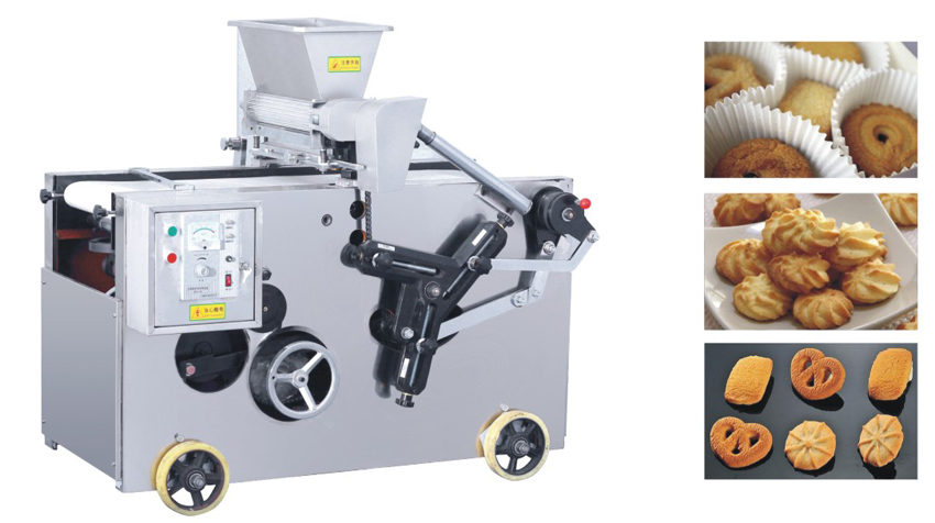 概述: 曲奇糕點機,是通過面團擠出成形,能生產(chǎn)多種獨特花式點心和曲奇餅干坯的成形機,具有技術(shù)先進、結(jié)構(gòu)緊湊、多功能、操作簡單等特點,深受廣大用戶所歡迎,也是投資者目前市場最理想的新型儀器機械之一。該機具有多種模具,能生產(chǎn)幾十種花式曲奇餅干,用戶可根據(jù)需要自行調(diào)節(jié)選擇。成形的花式點心與曲奇餅干,形態(tài)獨特、花紋清晰、造型美觀。該機生產(chǎn)的生坯采用熱風旋轉(zhuǎn)爐及隧道爐烘烤均可